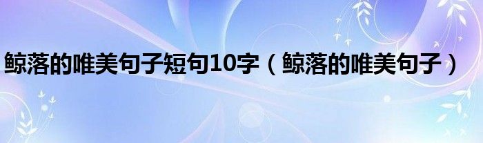 大家好,小育來(lái)為大家講解下。鯨落的唯美句子短句10字,鯨落的唯美句子很多人還不知道,現(xiàn)在讓我們一起來(lái)看看吧!