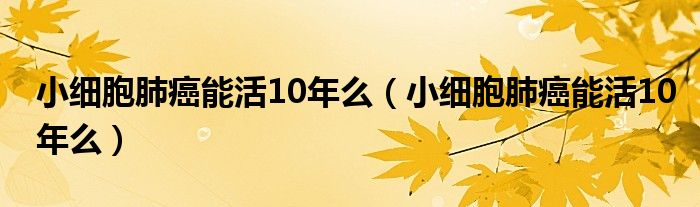摘要大家好,知識(shí)小編來為大家解答以上的問題。小細(xì)胞肺癌能活10年么,小細(xì)胞肺癌能活10年么很多人還不知道,現(xiàn)在讓我們一起來看看吧!小細(xì)胞肺
