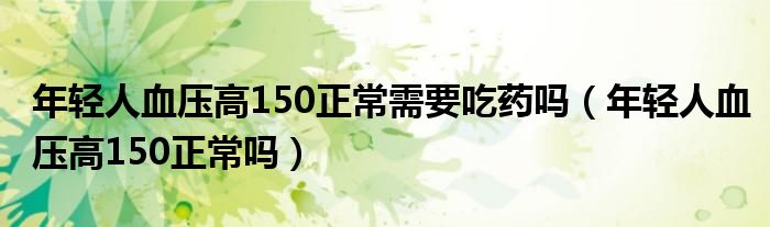 大家好,知識小編來為大家解答以上的問題。年輕人血壓高150正常需要吃藥嗎,年輕人血壓高150正常嗎很多人還不知道,現(xiàn)在讓我們一起來看看吧!