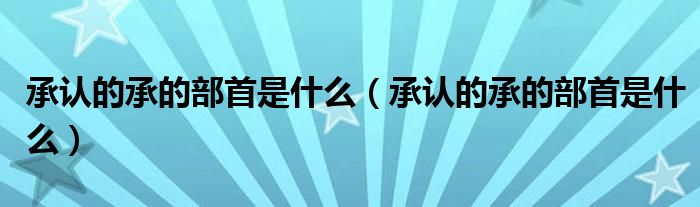 大家好,小育來為大家講解下。承認(rèn)的承的部首是什么,承認(rèn)的承的部首是什么很多人還不知道,現(xiàn)在讓我們一起來看看吧!