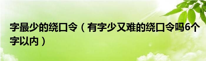 大家好,小育來為大家講解下。字最少的繞口令,有字少又難的繞口令嗎6個字以內(nèi)很多人還不知道,現(xiàn)在讓我們一起來看看吧!
