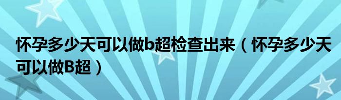 大家好,知識小編來為大家解答以上的問題。懷孕多少天可以做b超檢查出來,懷孕多少天可以做B超很多人還不知道,現在讓我們一起來看看吧!