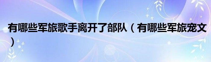 大家好,小育來為大家講解下。有哪些軍旅歌手離開了部隊,有哪些軍旅寵文很多人還不知道,現(xiàn)在讓我們一起來看看吧!