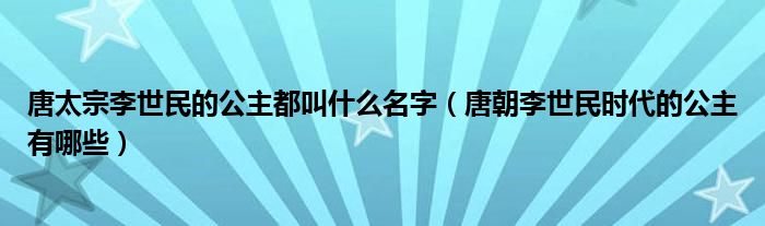 大家好,小育來(lái)為大家講解下。唐太宗李世民的公主都叫什么名字,唐朝李世民時(shí)代的公主有哪些很多人還不知道,現(xiàn)在讓我們一起來(lái)看看吧!