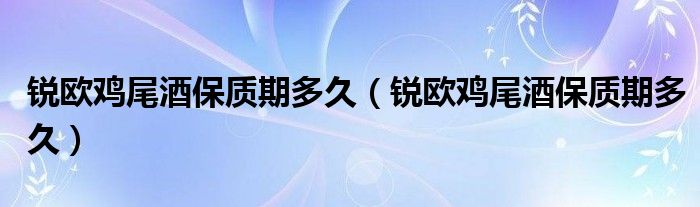 大家好,小育來(lái)為大家講解下。銳歐雞尾酒保質(zhì)期多久,銳歐雞尾酒保質(zhì)期多久很多人還不知道,現(xiàn)在讓我們一起來(lái)看看吧!