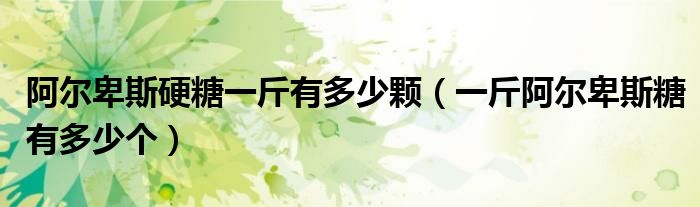 大家好,小育來(lái)為大家講解下。阿爾卑斯硬糖一斤有多少顆,一斤阿爾卑斯糖有多少個(gè)很多人還不知道,現(xiàn)在讓我們一起來(lái)看看吧!