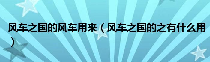 大家好,小育來(lái)為大家講解下。風(fēng)車之國(guó)的風(fēng)車用來(lái),風(fēng)車之國(guó)的之有什么用很多人還不知道,現(xiàn)在讓我們一起來(lái)看看吧!
