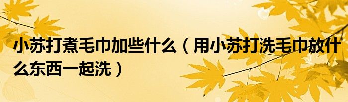 大家好,小育來為大家講解下。小蘇打煮毛巾加些什么,用小蘇打洗毛巾放什么東西一起洗很多人還不知道,現(xiàn)在讓我們一起來看看吧!