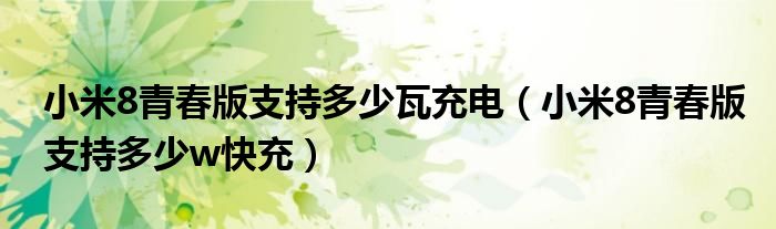 大家好,小育來為大家講解下。小米8青春版支持多少瓦充電,小米8青春版支持多少w快充很多人還不知道,現(xiàn)在讓我們一起來看看吧!