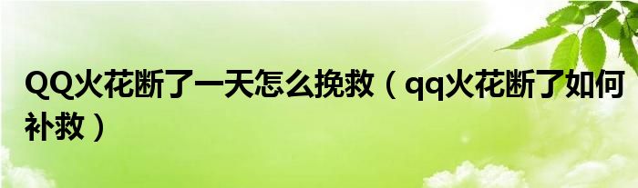 大家好,小育來為大家講解下。QQ火花斷了一天怎么挽救,qq火花斷了如何補救很多人還不知道,現(xiàn)在讓我們一起來看看吧!