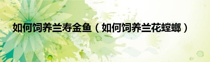 摘要大家好,小育來為大家講解下。如何飼養(yǎng)蘭壽金魚,如何飼養(yǎng)蘭花螳螂很多人還不知道,現(xiàn)在讓我們一起來看看吧!1、螳螂是非常嬌氣的,屬于熱