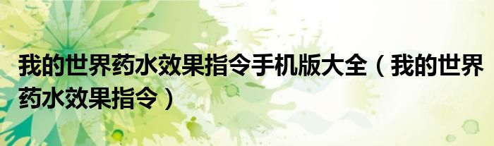 大家好,小育來為大家講解下。我的世界藥水效果指令手機(jī)版大全,我的世界藥水效果指令很多人還不知道,現(xiàn)在讓我們一起來看看吧!