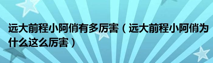 大家好,小育來為大家講解下。遠大前程小阿俏有多厲害,遠大前程小阿俏為什么這么厲害很多人還不知道,現(xiàn)在讓我們一起來看看吧!