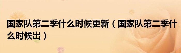 大家好,小育來(lái)為大家講解下。國(guó)家隊(duì)第二季什么時(shí)候更新,國(guó)家隊(duì)第二季什么時(shí)候出很多人還不知道,現(xiàn)在讓我們一起來(lái)看看吧!