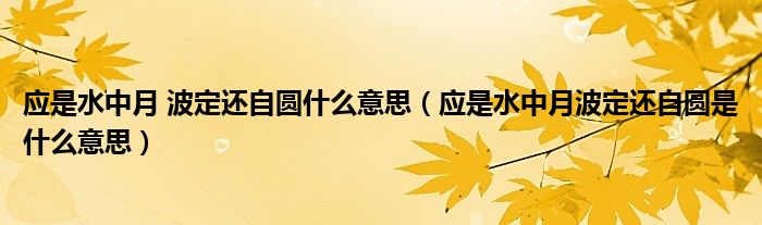大家好,小育來為大家講解下。應是水中月 波定還自圓什么意思,應是水中月波定還自圓是什么意思很多人還不知道,現在讓我們一起來看看吧!