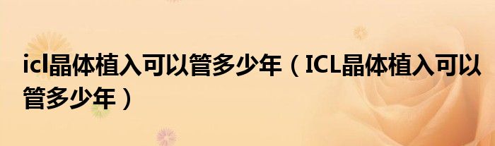 摘要大家好,小育來為大家講解下。icl晶體植入可以管多少年,ICL晶體植入可以管多少年很多人還不知道,現(xiàn)在讓我們一起來看看吧!1、ICL晶體植入
