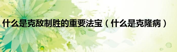 大家好,知識小編來為大家解答以上的問題。什么是克敵制勝的重要法寶,什么是克隆病很多人還不知道,現(xiàn)在讓我們一起來看看吧!