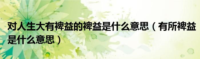 大家好,小育來為大家講解下。對人生大有裨益的裨益是什么意思,有所裨益是什么意思很多人還不知道,現(xiàn)在讓我們一起來看看吧!