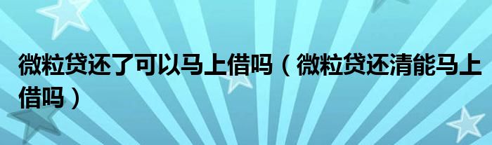 大家好,小育來為大家講解下。微粒貸還了可以馬上借嗎,微粒貸還清能馬上借嗎很多人還不知道,現(xiàn)在讓我們一起來看看吧!
