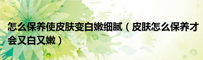 大家好,小育來為大家講解下。怎么保養(yǎng)使皮膚變白嫩細膩,皮膚怎么保養(yǎng)才會又白又嫩很多人還不知道,現(xiàn)在讓我們一起來看看吧!