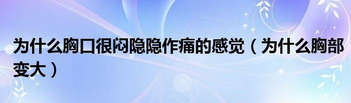 大家好,知識小編來為大家解答以上的問題。為什么胸口很悶隱隱作痛的感覺,為什么胸部變大很多人還不知道,現(xiàn)在讓我們一起來看看吧!