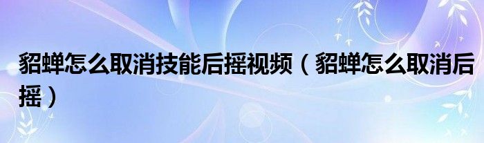 大家好,小育來為大家講解下。貂蟬怎么取消技能后搖視頻,貂蟬怎么取消后搖很多人還不知道,現(xiàn)在讓我們一起來看看吧!