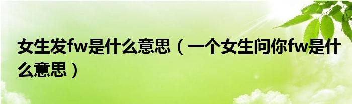 大家好,小育來為大家講解下。女生發(fā)fw是什么意思,一個女生問你fw是什么意思很多人還不知道,現(xiàn)在讓我們一起來看看吧!