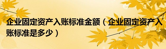 大家好,小育來為大家講解下。企業(yè)固定資產(chǎn)入賬標(biāo)準(zhǔn)金額,企業(yè)固定資產(chǎn)入賬標(biāo)準(zhǔn)是多少很多人還不知道,現(xiàn)在讓我們一起來看看吧!