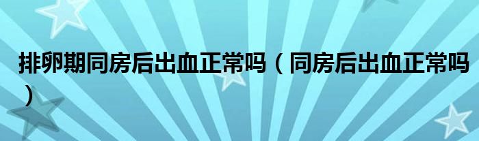 大家好,知識小編來為大家解答以上的問題。排卵期同房后出血正常嗎,同房后出血正常嗎很多人還不知道,現(xiàn)在讓我們一起來看看吧!