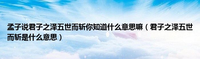 大家好,小育來為大家講解下。孟子說君子之澤五世而斬你知道什么意思嘛,君子之澤五世而斬是什么意思很多人還不知道,現(xiàn)在讓我們一起來看看吧!