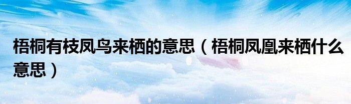 大家好,小育來為大家講解下。梧桐有枝鳳鳥來棲的意思,梧桐鳳凰來棲什么意思很多人還不知道,現(xiàn)在讓我們一起來看看吧!