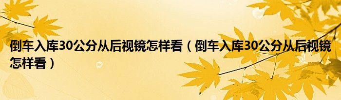 摘要大家好,小育來為大家講解下。倒車入庫30公分從后視鏡怎樣看,倒車入庫30公分從后視鏡怎樣看很多人還不知道,現(xiàn)在讓我們一起來看看吧!1、