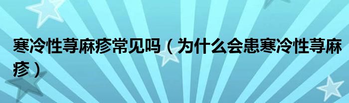 大家好,知識小編來為大家解答以上的問題。寒冷性蕁麻疹常見嗎,為什么會患寒冷性蕁麻疹很多人還不知道,現(xiàn)在讓我們一起來看看吧!