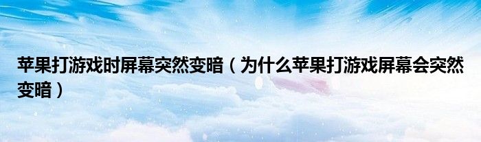 大家好,小育來(lái)為大家講解下。蘋果打游戲時(shí)屏幕突然變暗,為什么蘋果打游戲屏幕會(huì)突然變暗很多人還不知道,現(xiàn)在讓我們一起來(lái)看看吧!