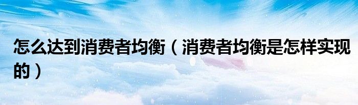 大家好,小育來為大家講解下。怎么達(dá)到消費者均衡,消費者均衡是怎樣實現(xiàn)的很多人還不知道,現(xiàn)在讓我們一起來看看吧!