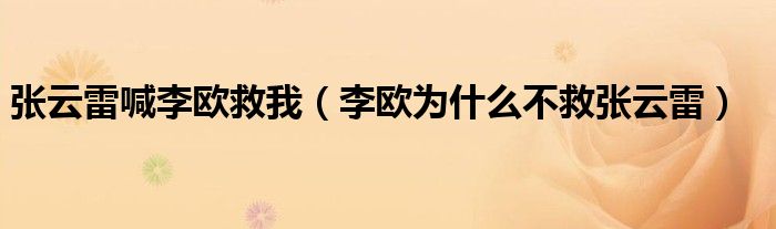 大家好,小育來為大家講解下。張?jiān)评缀袄顨W救我,李歐為什么不救張?jiān)评缀芏嗳诉€不知道,現(xiàn)在讓我們一起來看看吧!