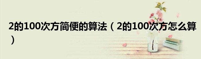 大家好,小育來為大家講解下。2的100次方簡便的算法,2的100次方怎么算很多人還不知道,現(xiàn)在讓我們一起來看看吧!