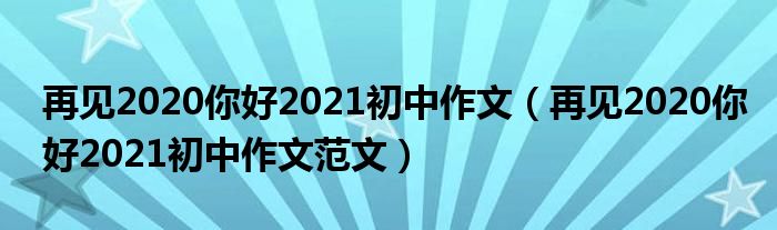 摘要大家好,伊人來為大家解答以上問題。再見2020你好2021初中作文,再見2020你好2021初中作文范文很多人還不知道,現(xiàn)在讓我們一起來看看吧!1