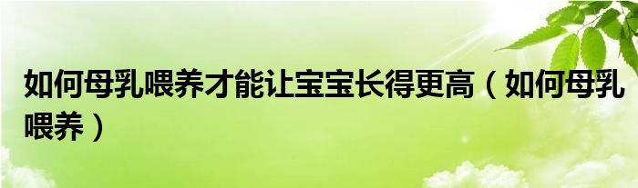 大家好,知識小編來為大家解答以上的問題。如何母乳喂養(yǎng)才能讓寶寶長得更高,如何母乳喂養(yǎng)很多人還不知道,現(xiàn)在讓我們一起來看看吧!