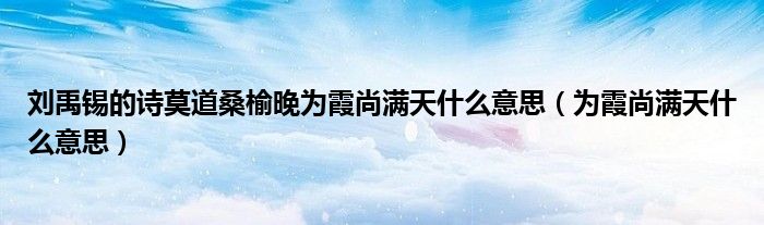 大家好,小育來為大家講解下。劉禹錫的詩莫道桑榆晚為霞尚滿天什么意思,為霞尚滿天什么意思很多人還不知道,現(xiàn)在讓我們一起來看看吧!