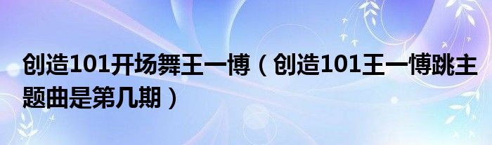 大家好,小育來(lái)為大家講解下。創(chuàng)造101開(kāi)場(chǎng)舞王一博,創(chuàng)造101王一愽跳主題曲是第幾期很多人還不知道,現(xiàn)在讓我們一起來(lái)看看吧!