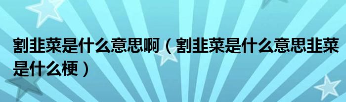 大家好,小育來為大家講解下。割韭菜是什么意思啊,割韭菜是什么意思韭菜是什么梗很多人還不知道,現(xiàn)在讓我們一起來看看吧!