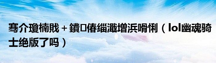 大家好,小育來(lái)為大家講解下。騫介瓊楠戝+鐨偆緇濈増浜?jiǎn)鍚?,lol幽魂騎士絕版了嗎很多人還不知道,現(xiàn)在讓我們一起來(lái)看看吧!