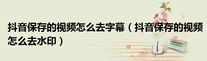 大家好,小育來(lái)為大家講解下。抖音保存的視頻怎么去字幕,抖音保存的視頻怎么去水印很多人還不知道,現(xiàn)在讓我們一起來(lái)看看吧!