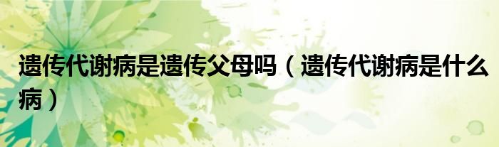 大家好,知識小編來為大家解答以上的問題。遺傳代謝病是遺傳父母嗎,遺傳代謝病是什么病很多人還不知道,現(xiàn)在讓我們一起來看看吧!