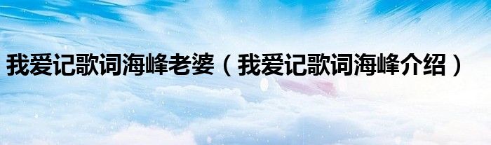 大家好,伊人來為大家解答以上問題。我愛記歌詞海峰老婆,我愛記歌詞海峰介紹很多人還不知道,現(xiàn)在讓我們一起來看看吧!