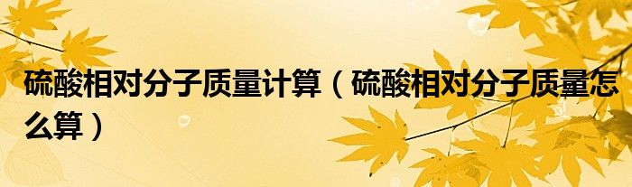 大家好,小育來為大家講解下。硫酸相對分子質(zhì)量計算,硫酸相對分子質(zhì)量怎么算很多人還不知道,現(xiàn)在讓我們一起來看看吧!