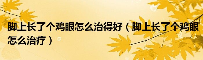 摘要大家好,知識小編來為大家解答以上的問題。腳上長了個雞眼怎么治得好,腳上長了個雞眼怎么治療很多人還不知道,現(xiàn)在讓我們一起來看看吧!腳