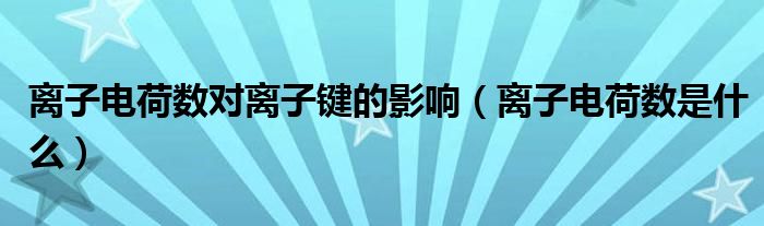 大家好,小育來為大家講解下。離子電荷數(shù)對離子鍵的影響,離子電荷數(shù)是什么很多人還不知道,現(xiàn)在讓我們一起來看看吧!