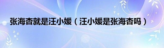 大家好,小育來(lái)為大家講解下。張海杏就是汪小媛,汪小媛是張海杏嗎很多人還不知道,現(xiàn)在讓我們一起來(lái)看看吧!